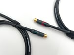 Hi-Fi RCA-Kabel-Paar, 1,25 m, markiert in Rot und Schwarz.